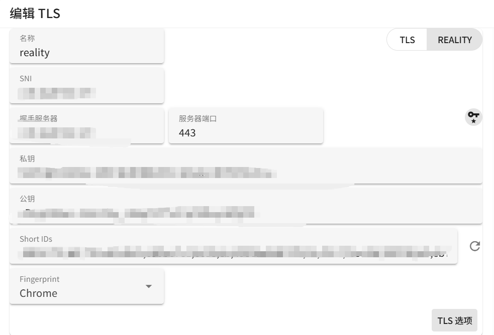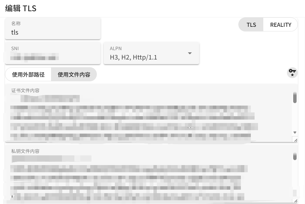 在设置入站规则之前,需根据需求配置 TLS 或 Reality。可选择伪装域名或自己的域名(通过 ACME)。